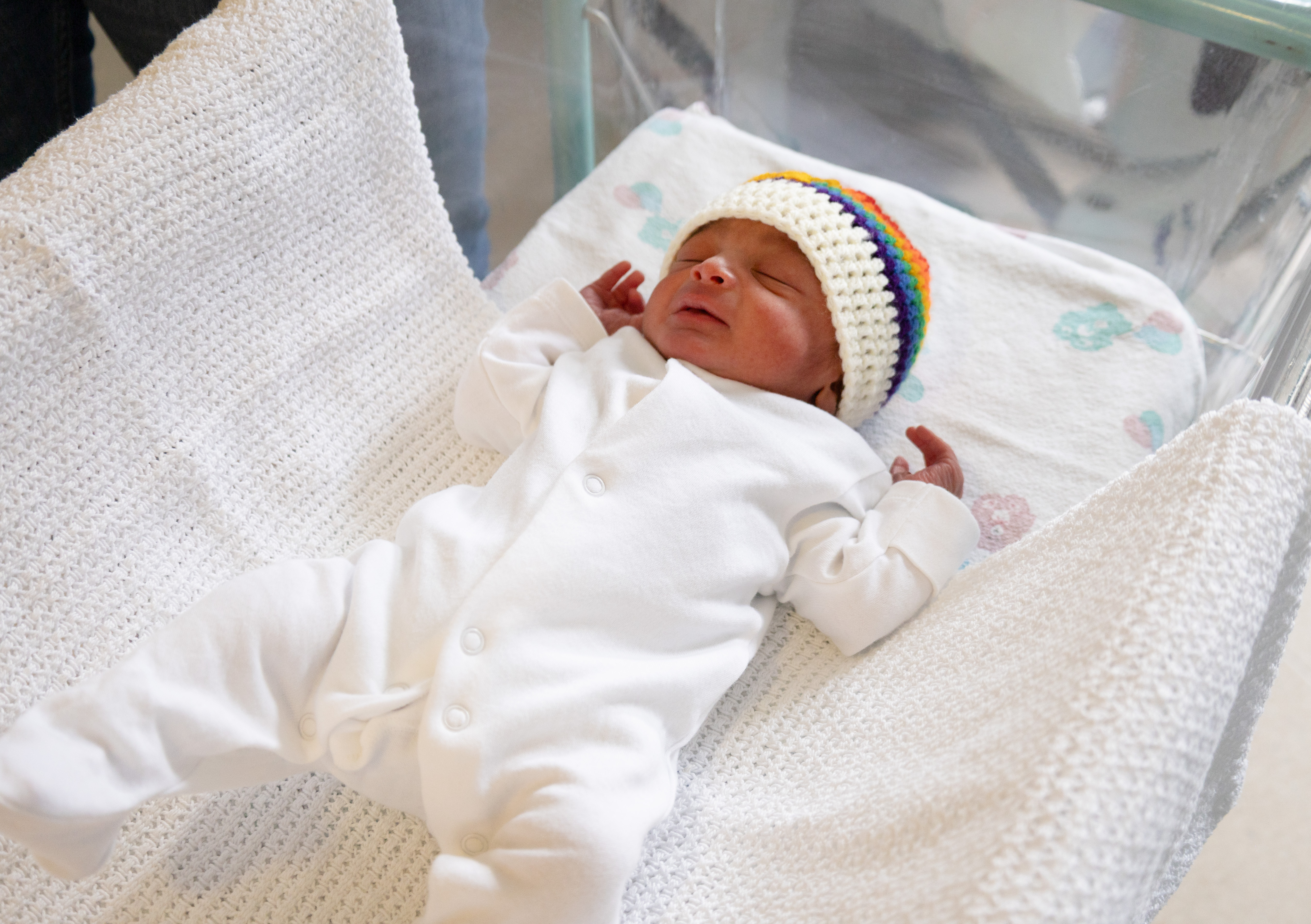 The hats come in all different sizes, including for premature babies, and each one takes roughly an hour to make. Hazel has kindly donated 20 hats to our Maternity Ward at the Royal Albert Edward Infirmary in the hopes this will bring a smile to the faces of families. As well as Gabriel being the first baby boy to wear his nana’s hat, another family, Finlay Hunt and Jordan Bamford welcomed their Rainbow baby girl, Elora Juliette, into the world on Saturday 29th March. Elora is the first baby girl to wear the Rainbow hat at WWL.