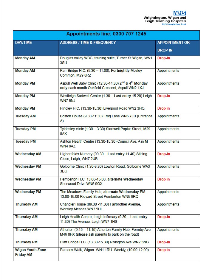 Dedicated Appointment Line (Health Visiting): 0300 707 1245