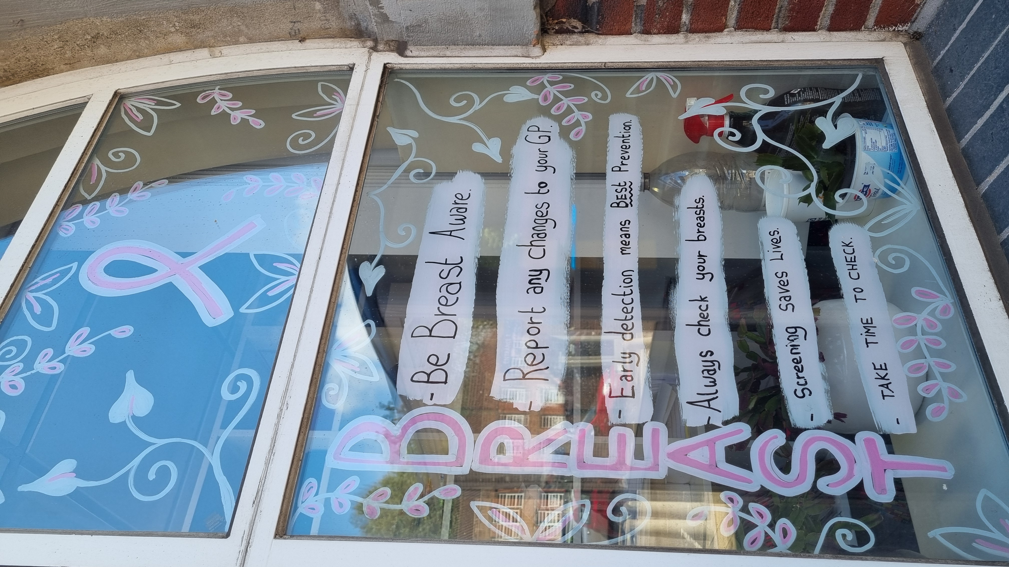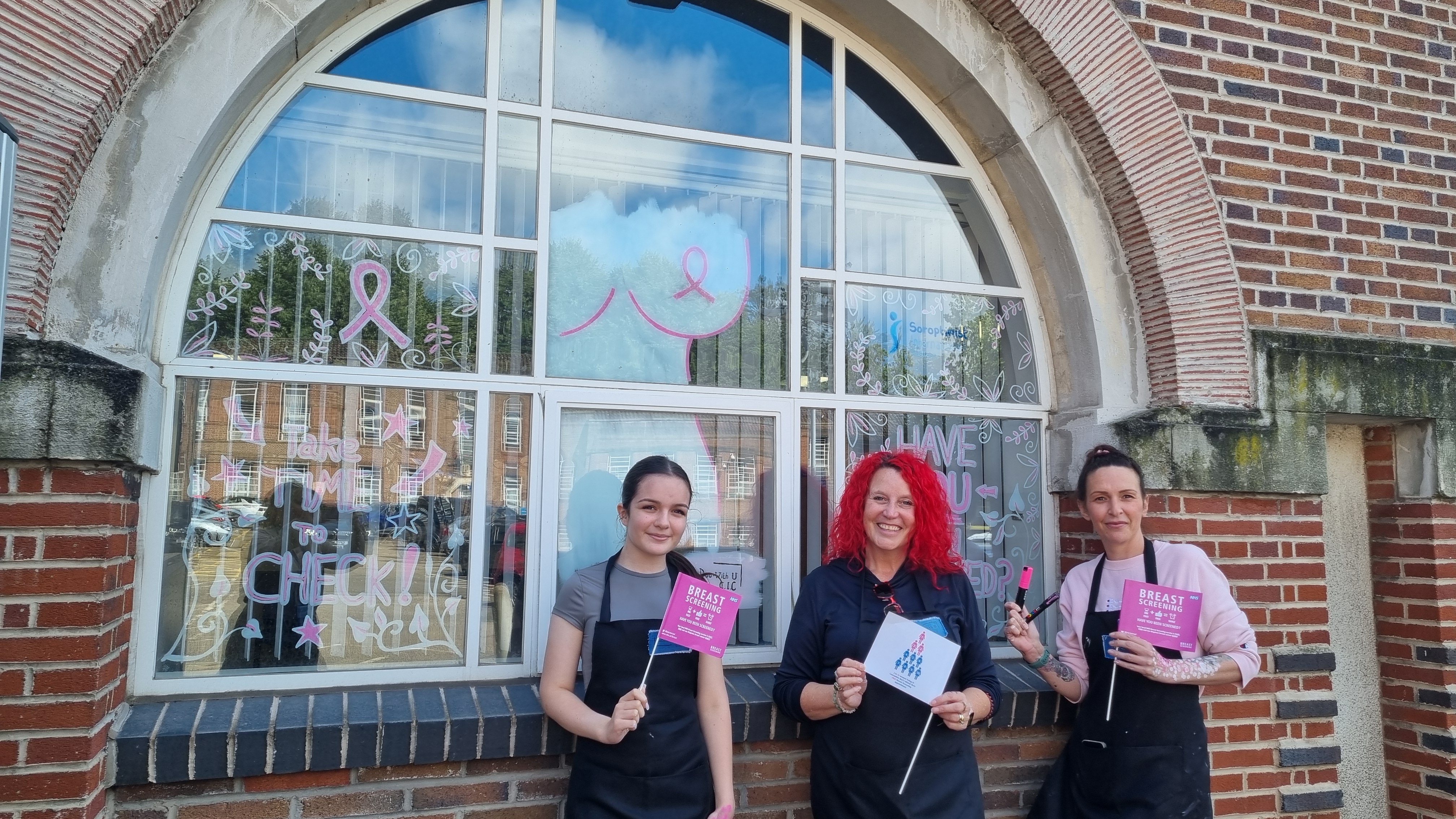 Artists Lisa Burney and Jess Davis from ReDoo with U CIC, said: “It was a pleasure and an honour to decorate the windows in the unit for a cause close to our hearts, coincidentally falling on the same week one of us is due a routine mammogram. We hope it serves as a passionate reminder of how important it is to attend appointments and do regular checks.”