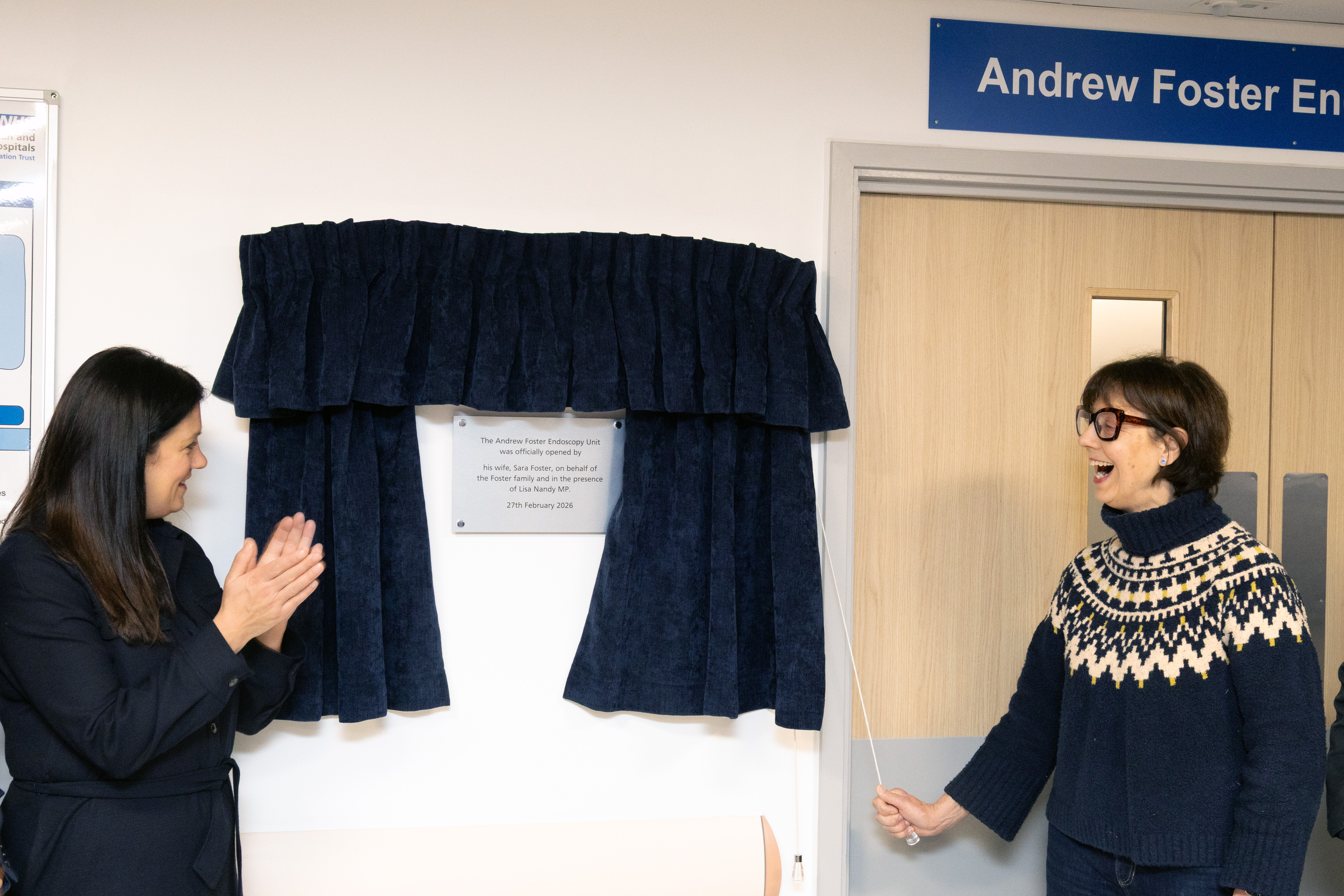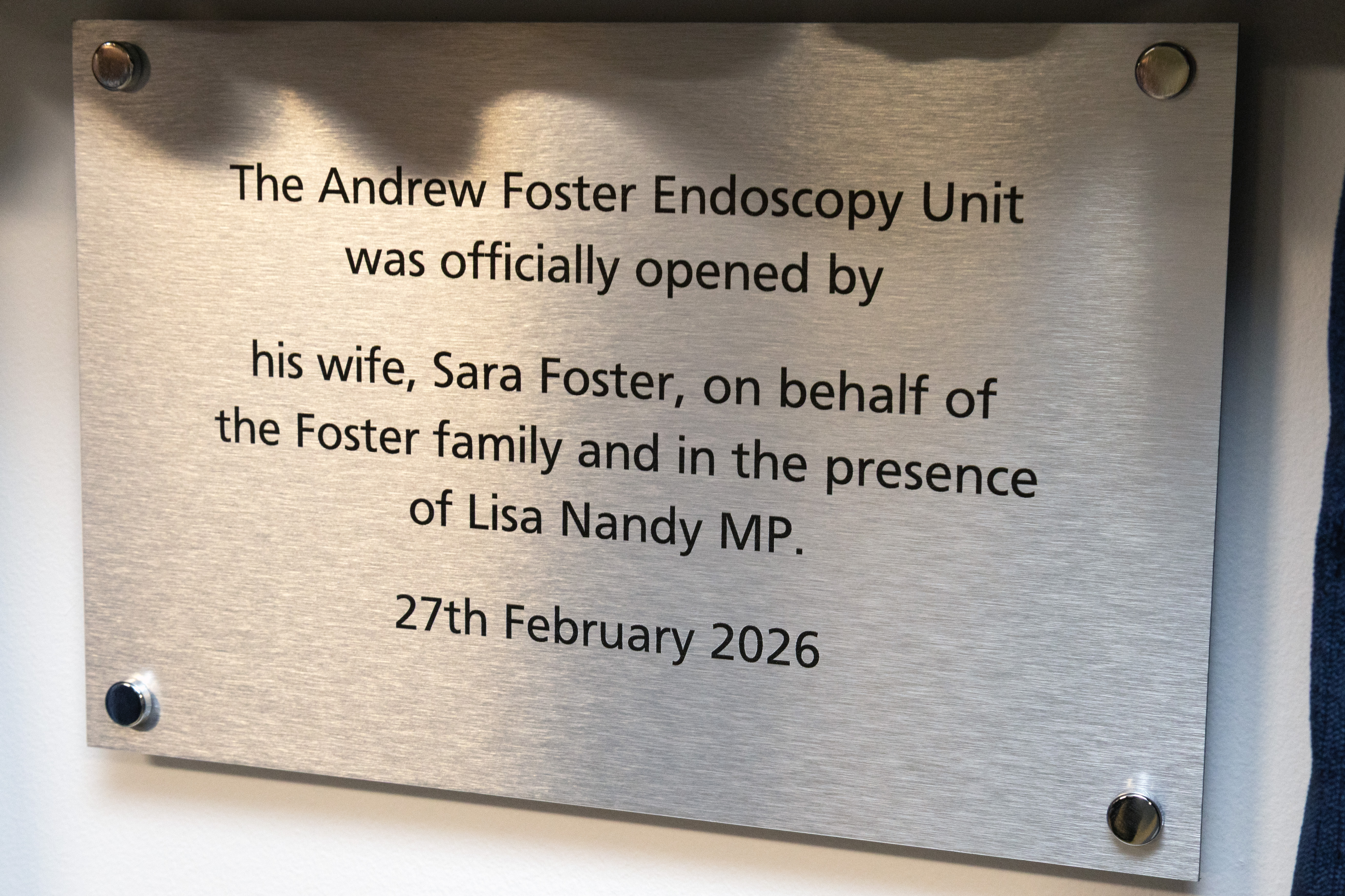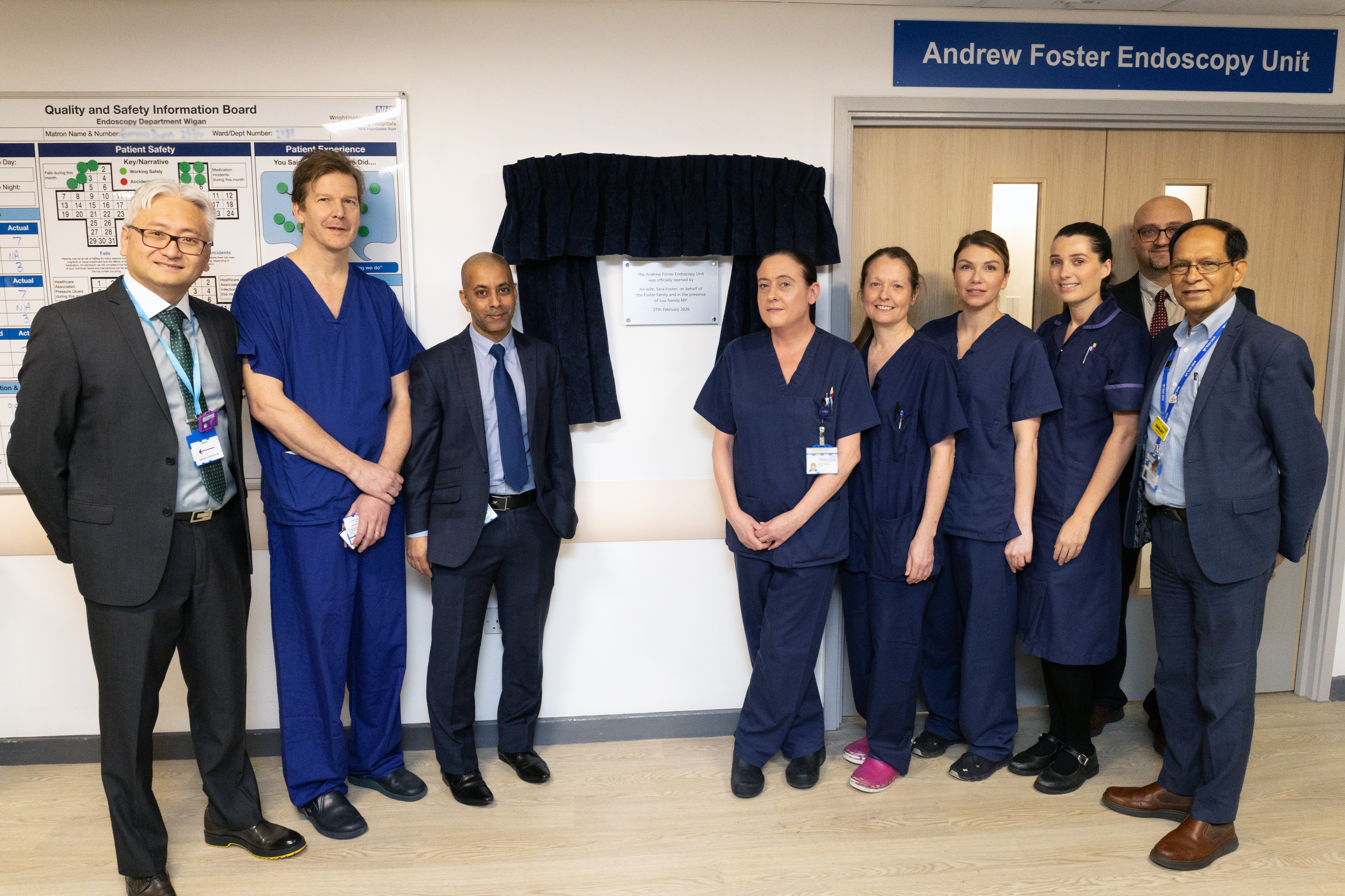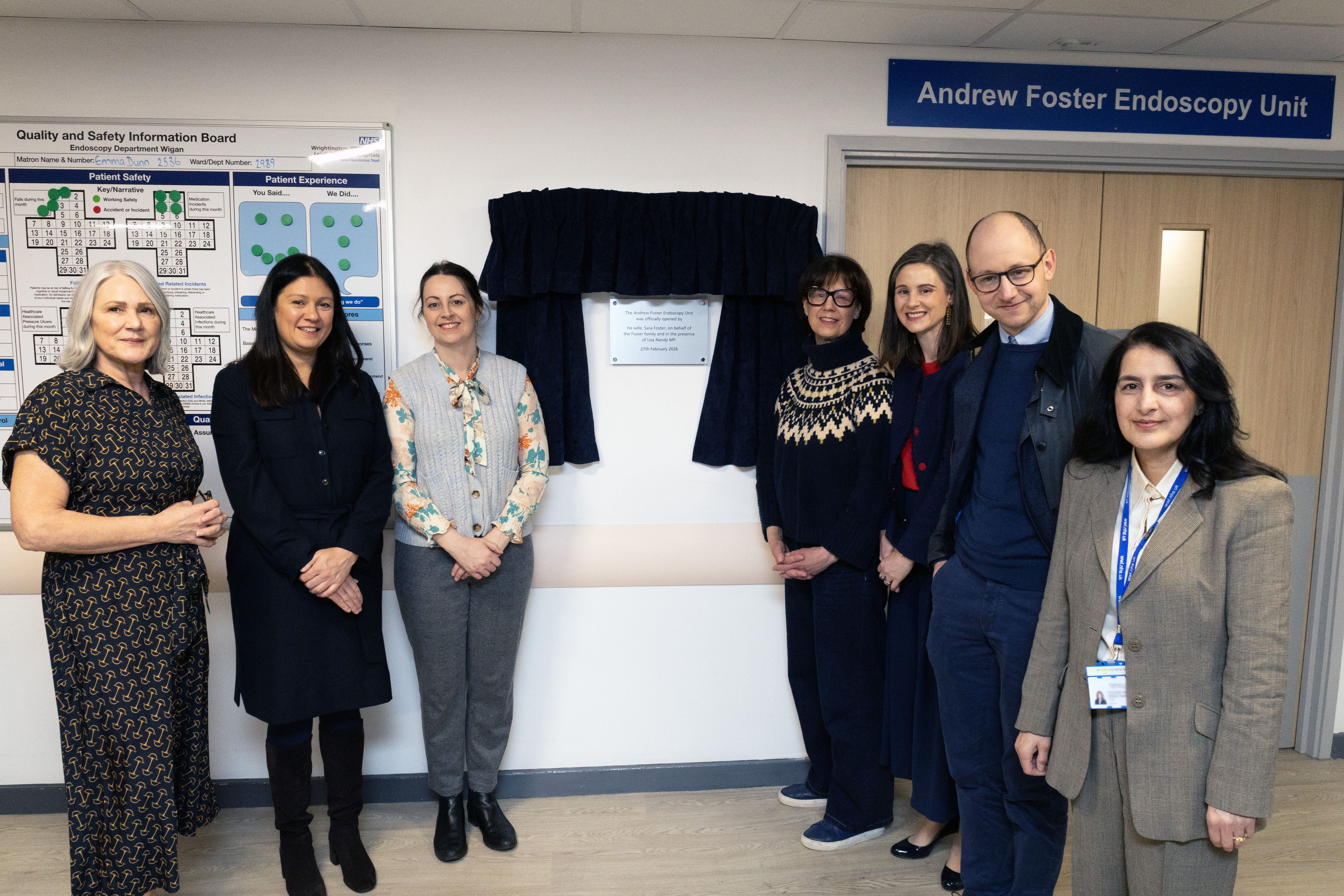A special event was held as members of Andrew’s family unveiled a commemorative plaque at the Andrew Foster Endoscopy Unit, in front of gathered guests, staff from the unit, and Wigan MP, Lisa Nandy.